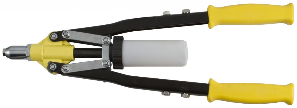 Для крепления вытяжных заклепок из алюминия, стали и нержавеющей стали. Усиленная конструкция. Пять сменных насадок для разных диаметров заклепок. Регулировка захвата заклепки. Пластиковый контейнер для сбора отработанных сердечников заклепок. Материал: инструментальная сталь, пластиковые рукоятки. Упаковка: картонная коробка.