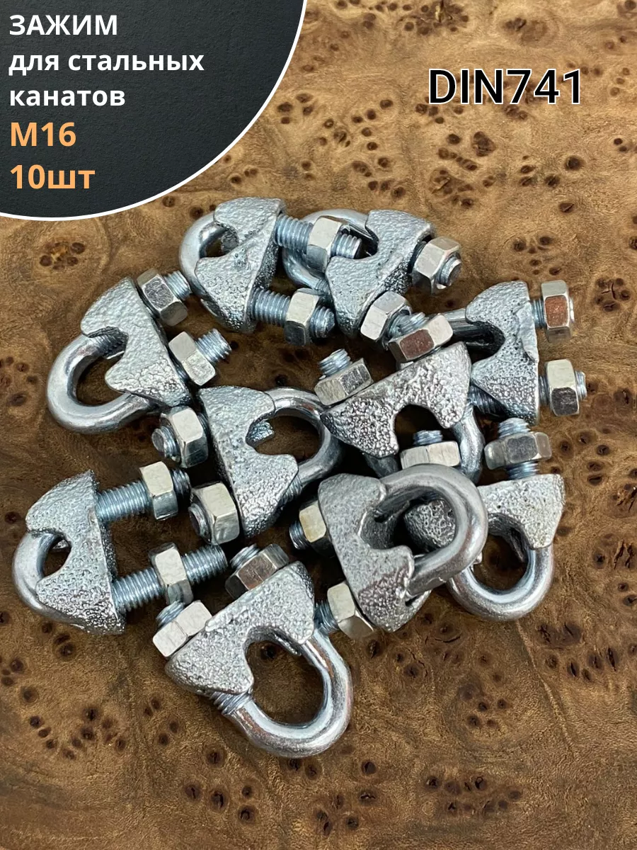 Зажим для стальных канатов М16 ОЦ DIN741, 10 шт.